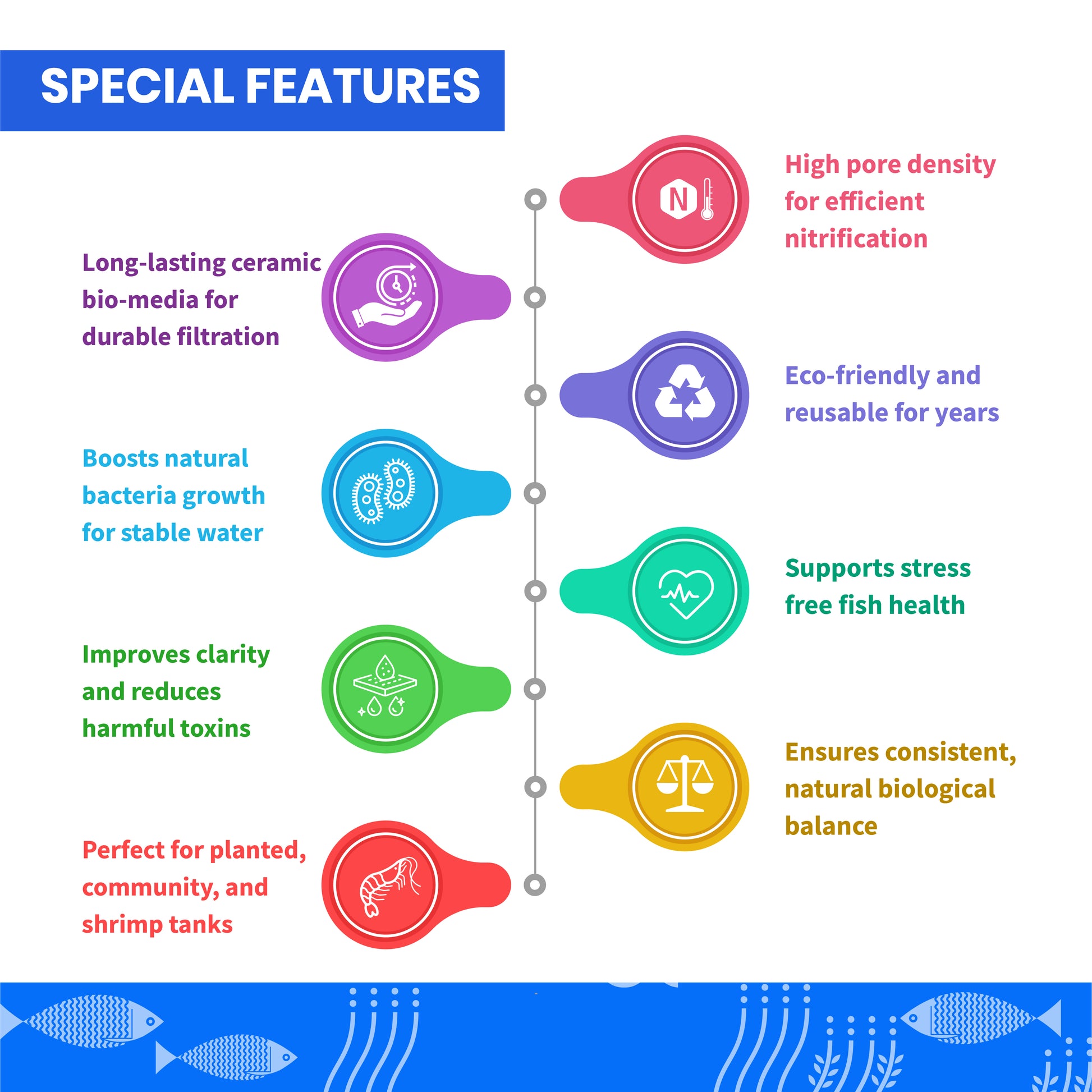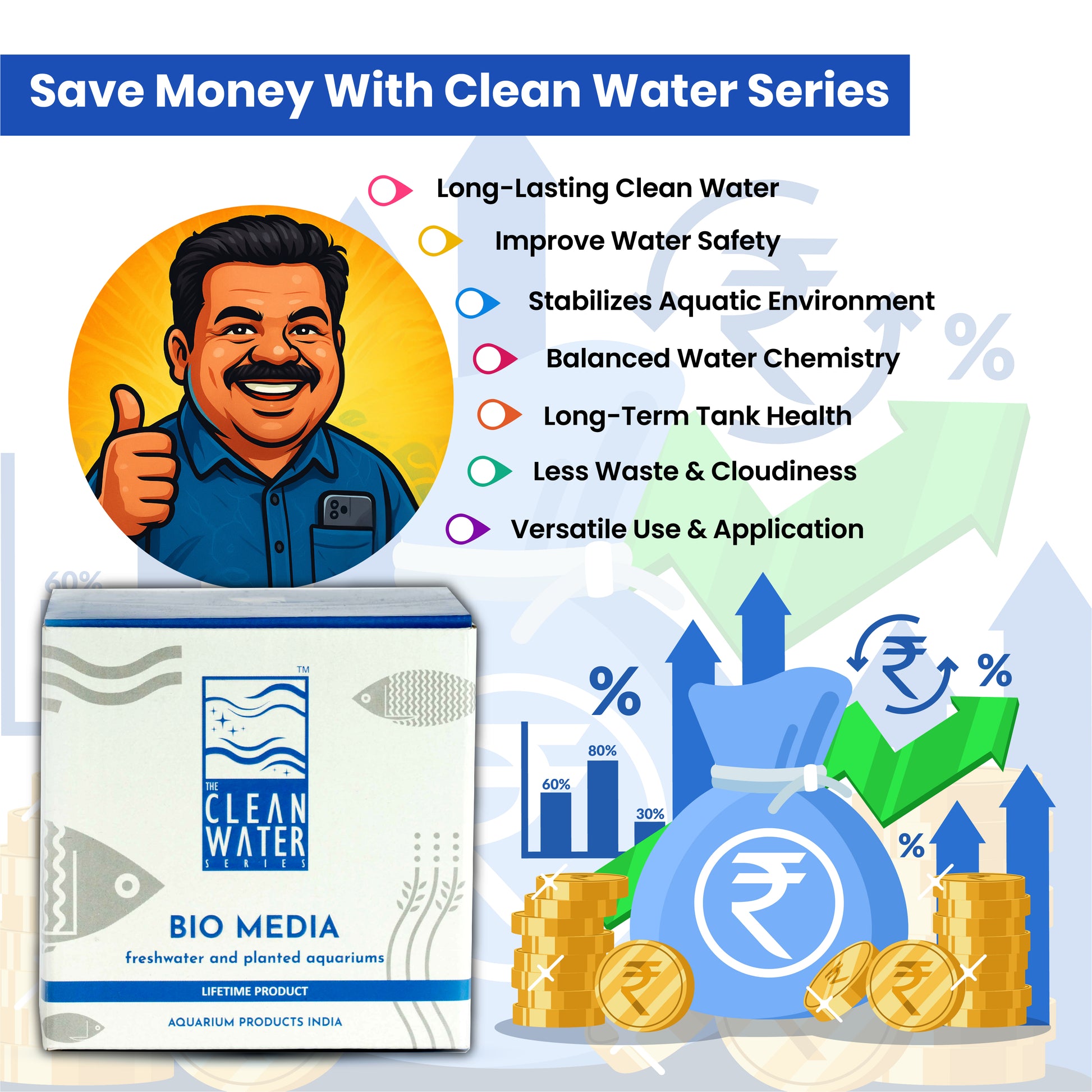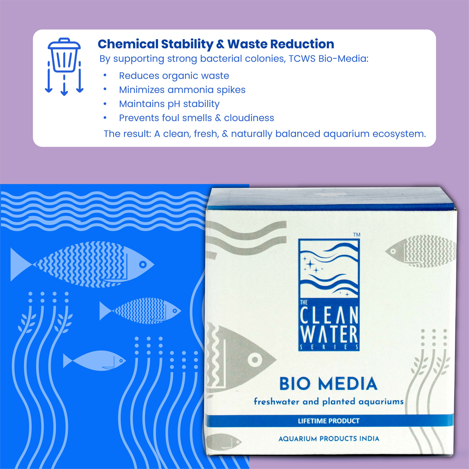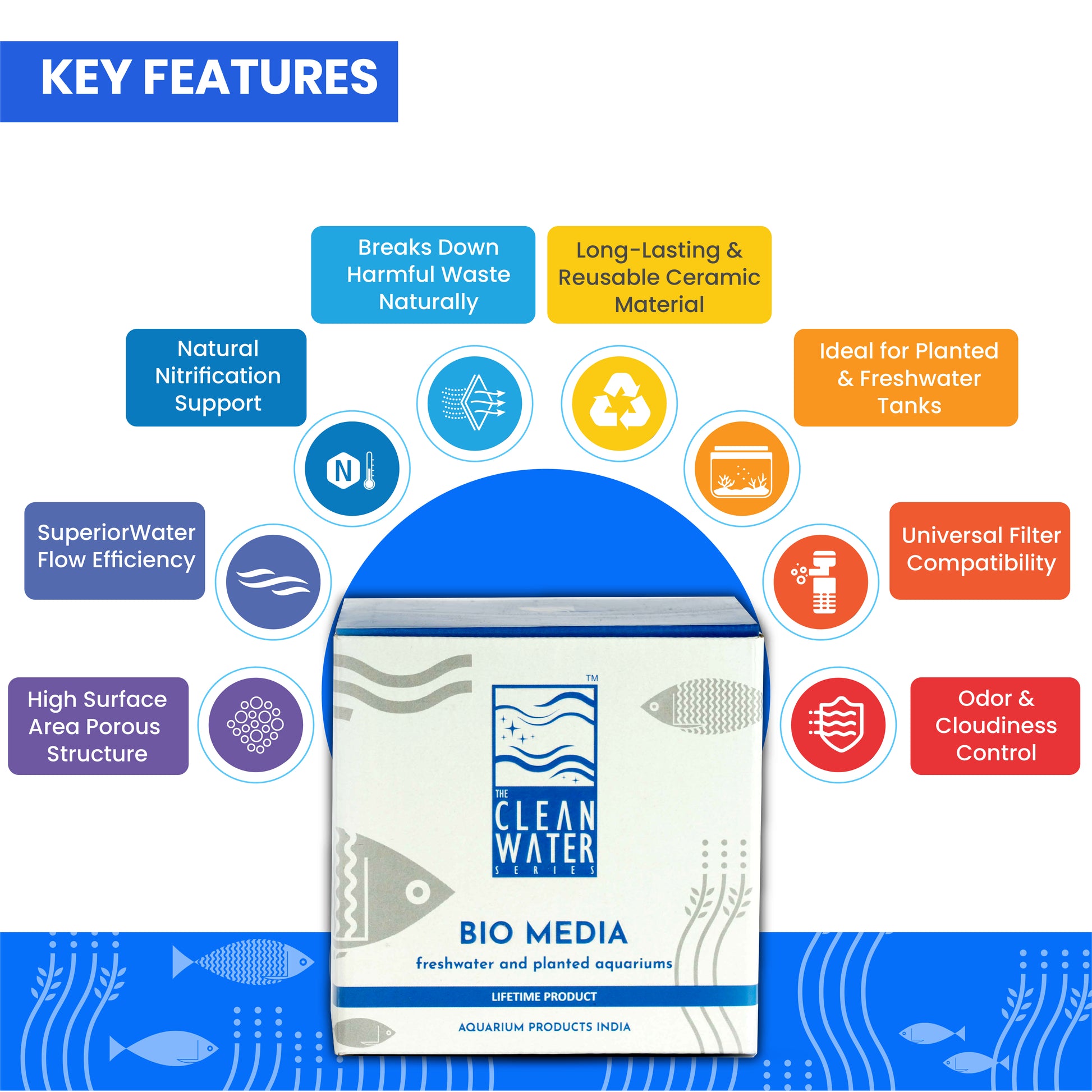 क्लीन वाटर सीरीज (TCWS) बायो-मीडिया - फ्रेश वाटर और प्लांटेड एक्वेरियम एक लाइफ टाइम प्रोडक्ट है और पैक नेट बैग और वाटर केयर 4+ के साथ आता है। झरझरा प्राकृतिक पत्थर में उच्च पारगम्यता है और यह एक आदर्श वातावरण प्रदान करता है।