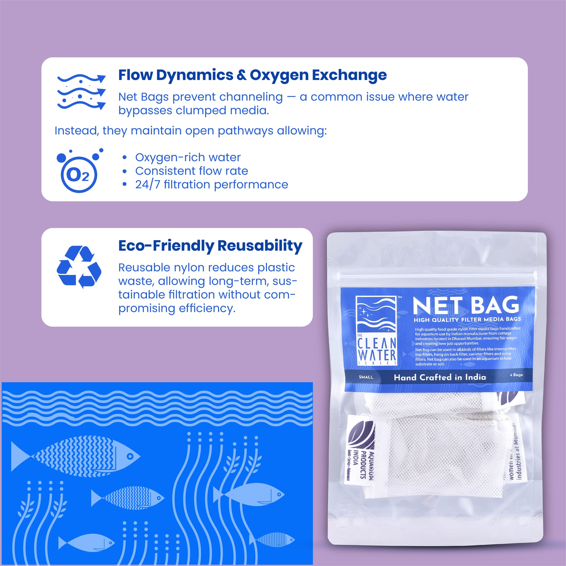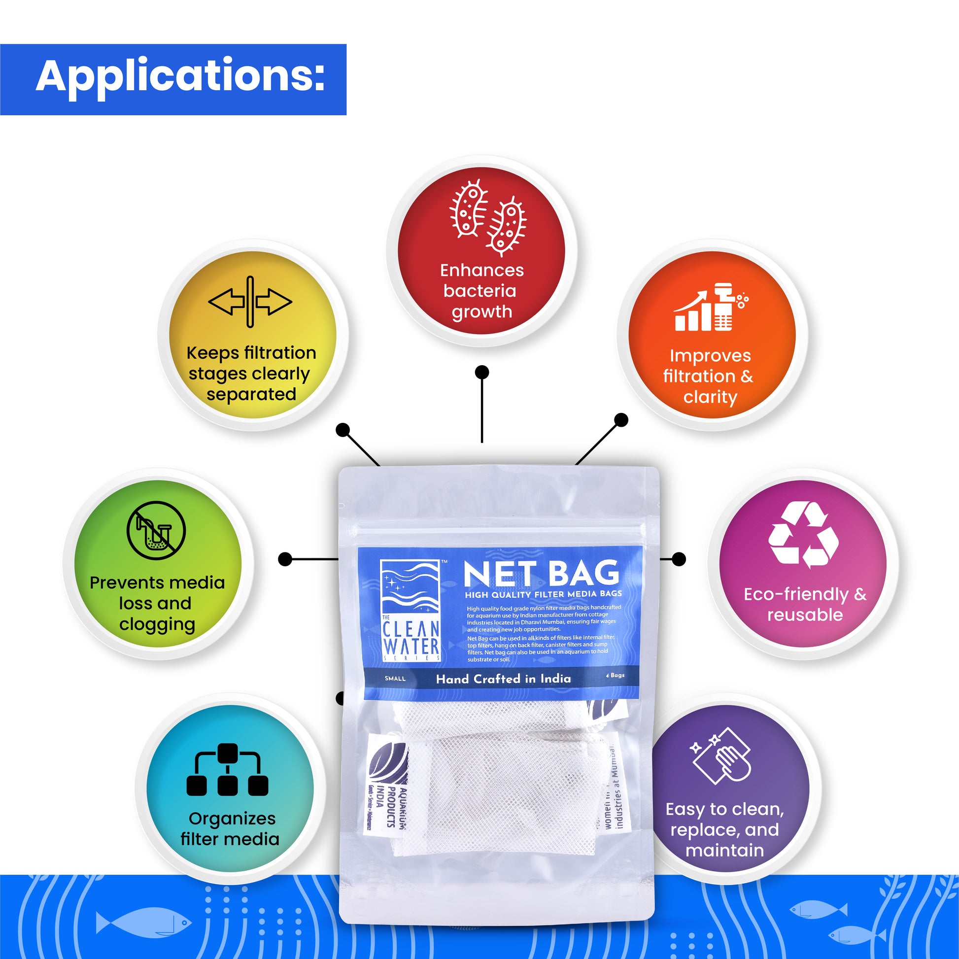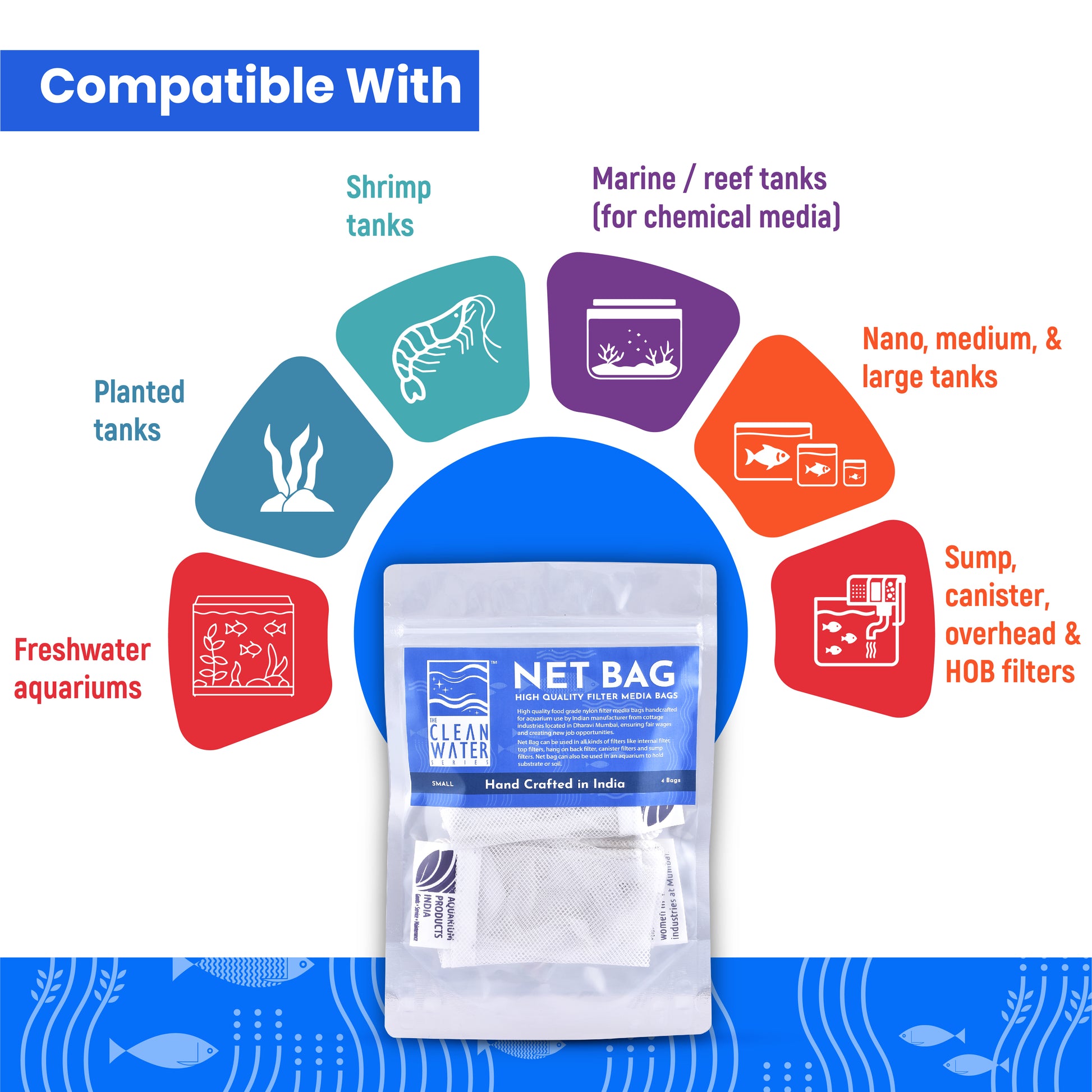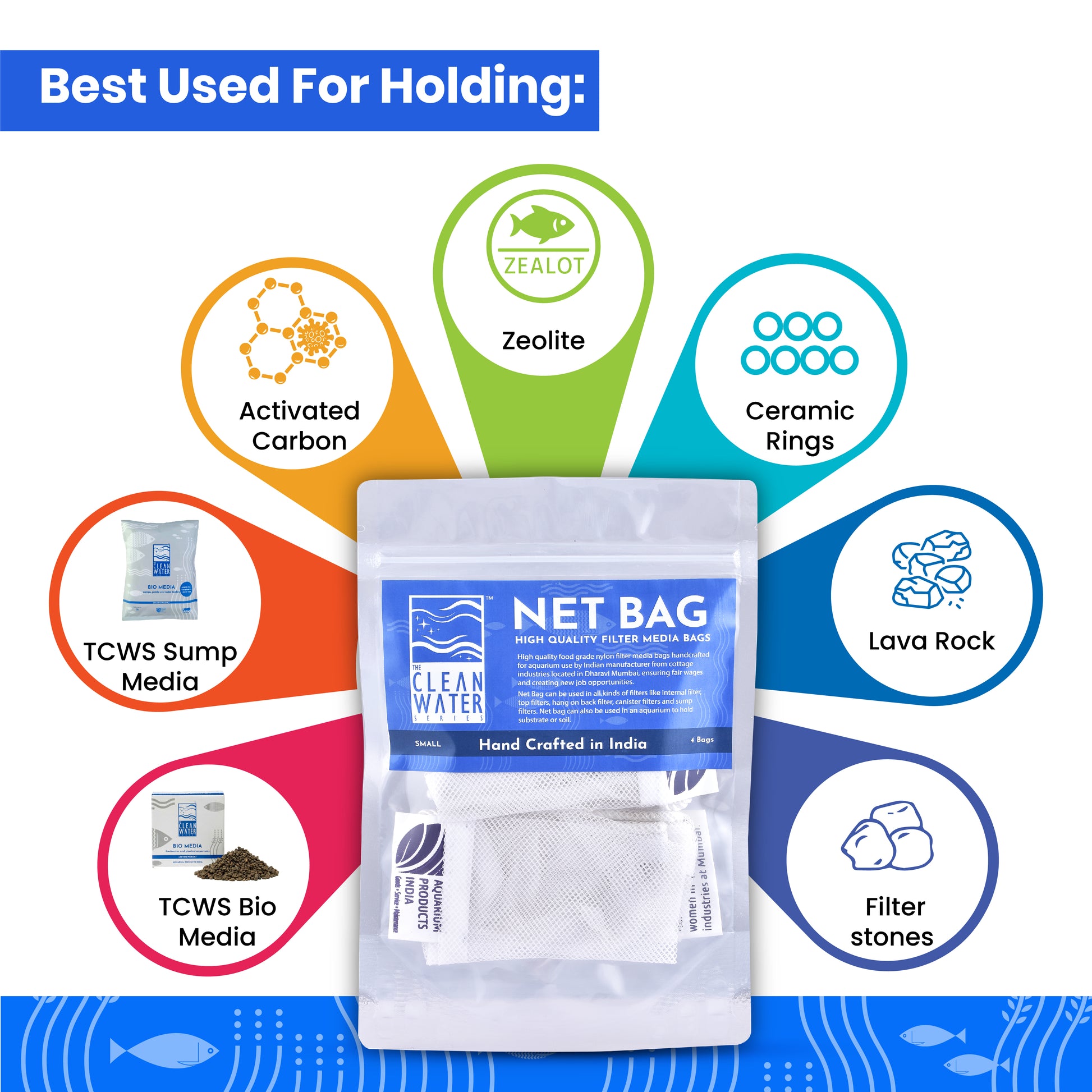 TCWS नेट बैग स्मॉल (4 का पैक) एक्वेरियम मालिकों के लिए डिज़ाइन किया गया है जिन्हें जैविक और रासायनिक फ़िल्टर मीडिया रखने के लिए उच्च गुणवत्ता वाले, टिकाऊ बैग की आवश्यकता होती है। प्रत्येक बैग में 1 मिमी मेश ड्रॉस्ट्रिंग डिज़ाइन है, जो प्यूमिस , बायो बॉल , सिरेमिक रिंग , सक्रिय कार्बन और अन्य मीडिया के लिए एकदम सही है। ये मध्यम आकार के बैग फ़ीड-ग्रेड नायलॉन जाल से बने होते हैं, जो मज़बूती और दीर्घायु सुनिश्चित करते हैं।