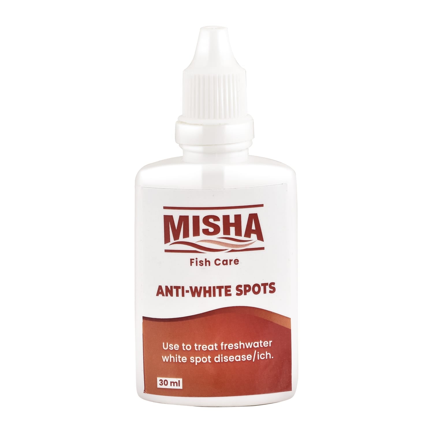 Misha Anti White Spot 30ml is specially formulated to combat freshwater white spot disease (Ich), a common parasitic infection in aquarium fish. This treatment is gentle enough for sensitive species like Tetras and baby fish, ensuring a healthy and stress-free recovery.