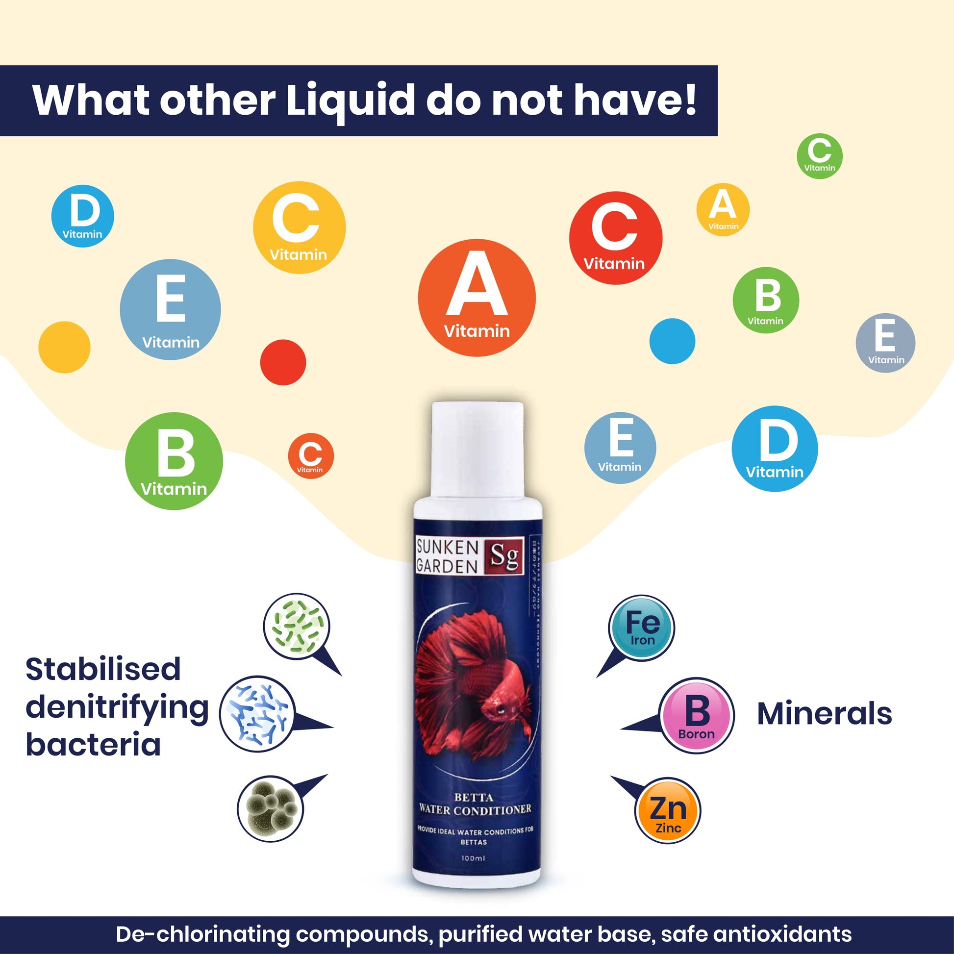 Give your Betta the best water it deserves. Choose Sunken Garden Betta Fish Water Conditioner - India’s trusted choice for healthy, stress-free, and vibrant Betta aquariums.