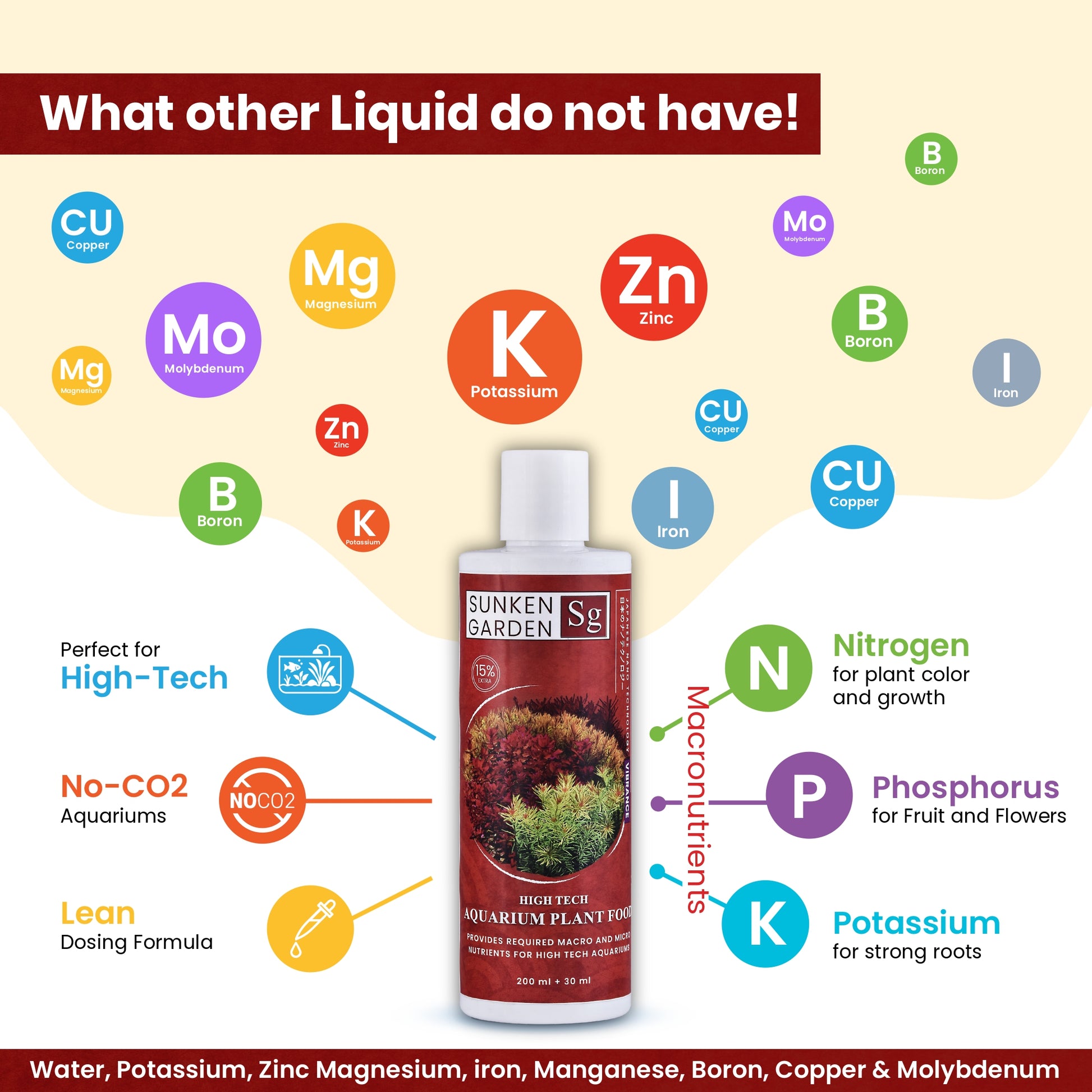 Micronutrients: Fe (Iron), Mg, Mn, Zn, B, Cu, Mo